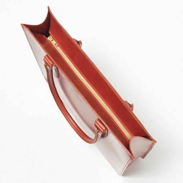 トートバッグは荷物の出し入れがしやすいのが特徴ですが、防犯を考えると開口部に蓋が付いているのがおすすめ。とりわけ海外ブランドのレザー製トートバッグの場合、蓋が付いているものにはなかなかお目にかかれないのですが、グレンロイヤルの2ハンドルジップトートバッグなら、ジップ仕様でブライドルレザー製の蓋を装備。あまり目立たないように内側に凹むようにデザインされているので、トートバッグらしさが損なわれていないという点も魅力です。