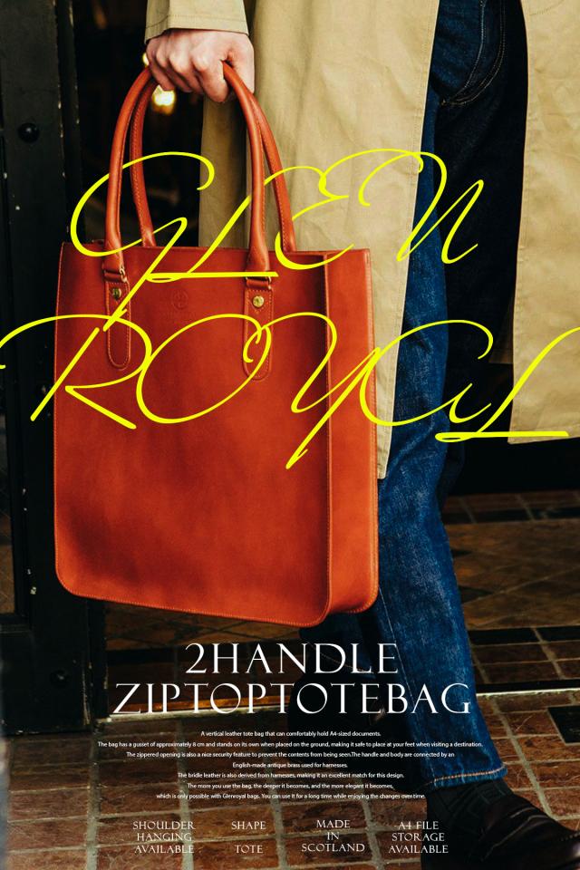 | ■GLENROYAL グレンロイヤル / 2HANDLE ZIP TOP TOTE BAG 2ハンドルジップトップトートバッグ 縦型 A4【01-6038】 |