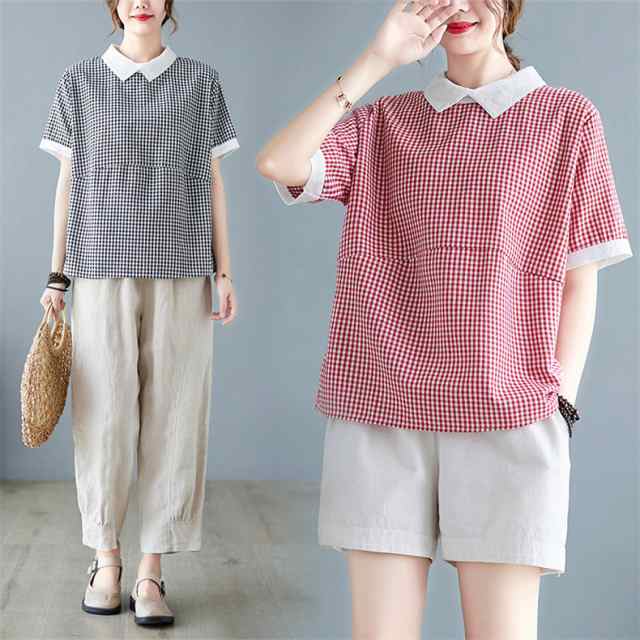 ブラウス シャツ レディース 夏トップス 半袖 ギンガムチェック プルオーバー 気になる紫外線対策や冷房対策にも◎ 重宝すること間違いなし 大人気