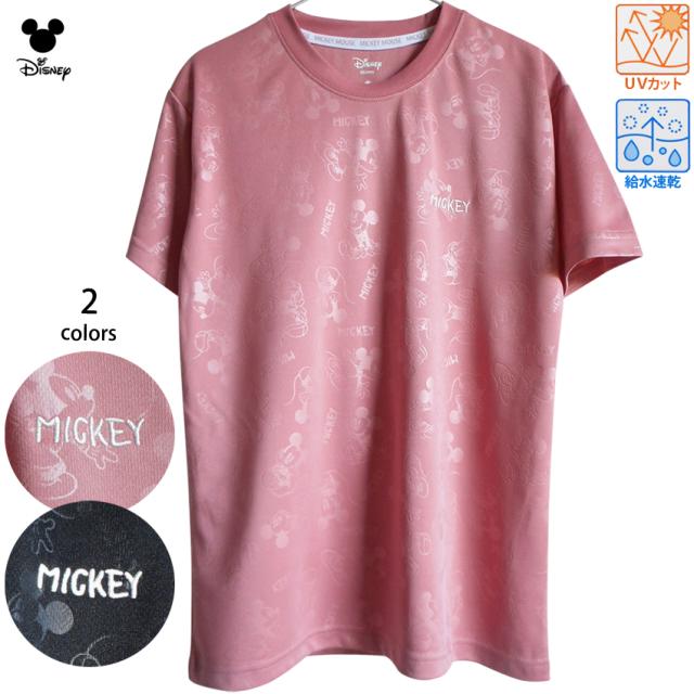 送料無料 Tシャツ ミッキー ミッキーマウス ディズニー MICKEY ロゴ 刺繍 レディース UV対策 吸水 速乾 cool ドライウェア スポーツ ジョギング ヨガ ピラティス フィットネス ジム ドライメッシュ ワンポイント キュート 透かし 総柄 くすみカラー ブラックピンク 黒