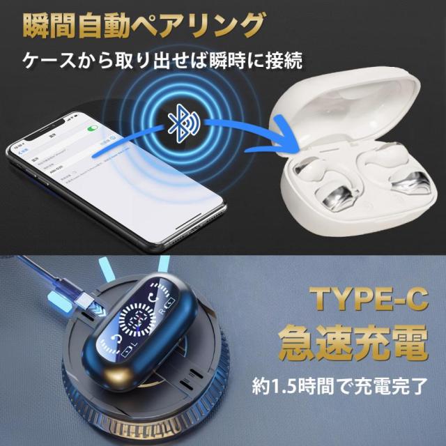 ワイヤレスイヤホン bluetooth5.4 空気伝導 iphone15 ブルートゥース 片耳 両耳 残量表示 音量調整 iPhone/Android ヘッドホン 小型 軽量 高音質 左右分離