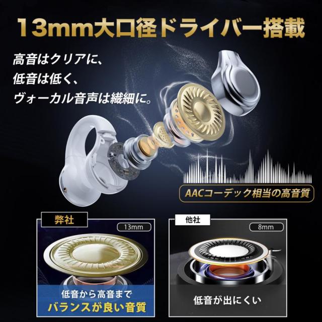 Bluetooth5.4の 安定通信で13mm大口ドライバーのHiFi音質で音楽、ゲームも遅延無しで楽しめます。