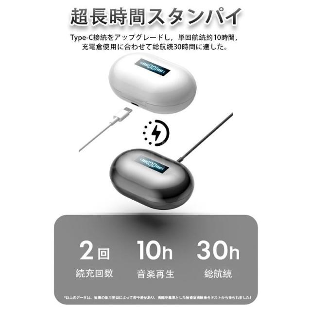 ●充電ケース、左右イヤホンそれぞれ残量スクリーン搭載、確認しやすい!