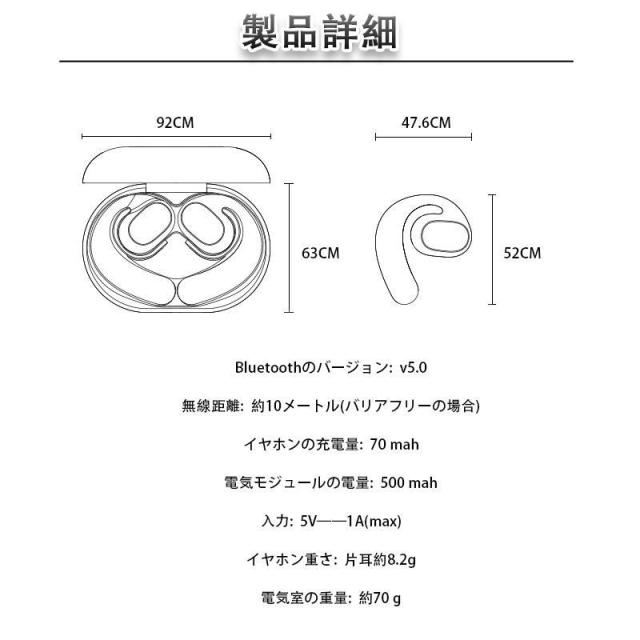 ワイヤレスイヤホン 空気伝導イヤホン Bluetooth5.0 耳掛け式 ブルートゥース 高音質 Hi-Fi 超軽量 LEDディスプレイ 9Dステレオ プレゼント