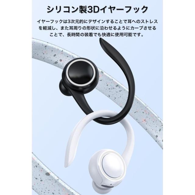 イヤーフックは3次元的にデザインすることで耳へのストレスを軽減し、また耳周りの形状に沿わせるようにカーブさせることで、長時間の装着でも快適に使用可能です。