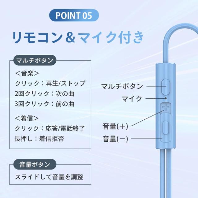 マイク付き有線イヤホンでテレワークやオンラインゲームに最適です。