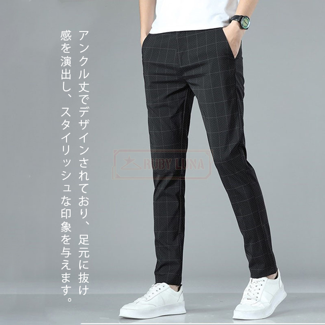 最安挑戦 冬新作 送料無料 新作 スラックス メンズ パンツ 九分丈 無地 薄手 春夏 ビジネス オフィス 紳士 カジュアルパンツ チェック柄 長ズボン ストレッチ スキニ—パンツ 男性 ボトムス お洒落 美脚 スリム ロングパンツ