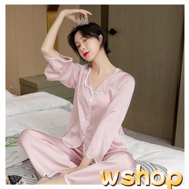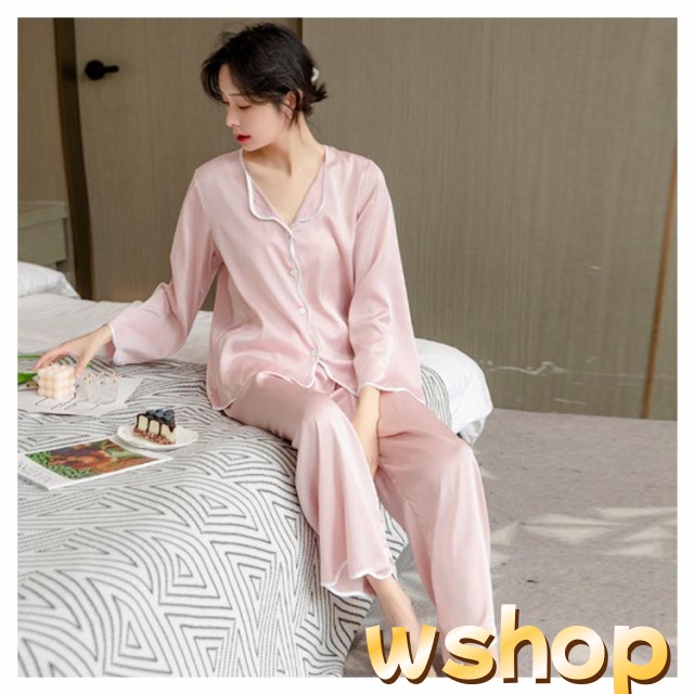 注目ランキング上位 品質安心 送料無料 通気 】ナイトウエア 人気急上昇 シルク風パジャマ 上下セット 薄い 女性 サテンパジャマ 前開きパジャマ 【wshop 春夏秋 レディース 体型カバー 部屋着 滑らか 可愛い 寝巻き 売上急増中 寝間着 即納対応中