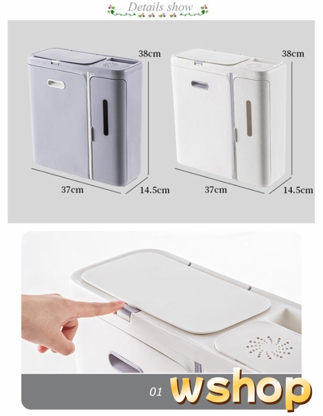 | ティッシュボックス付きゴミ箱♪ ティッシュを使用後、ポイッと捨てられるごみ箱、キッチンや洗面所、トイレなどオールマイティに活躍します。 そのまま置いてもOK!付属の貼って剥がせる透明なフィルムフック使って壁に浮かせても◎ スリムで設置場所を選ばないマルチに活躍するフタ付きゴミ箱。 ティッシュケースのフタはマグネット内蔵で、片手でも簡単に開閉できます。中には2段仕分けられ、ティッシュとサニタリー用品をすっぽり収納できます。 ダストボックスは取り外しできるから、ゴミ袋を簡単に設置でき、ゴミの出し入れも簡単。ゴミを隠し清潔感をキープできる優れもの。 スマホ置きや消臭剤入れも完備する多機能ゴミ箱です。 | |