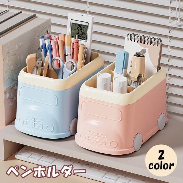 ペンホルダー 鉛筆立て ペン立て ペンスタンド 文房具 バス型 仕切り 卓上 机上収納 かわいい おしゃれ 整理整頓 便利
