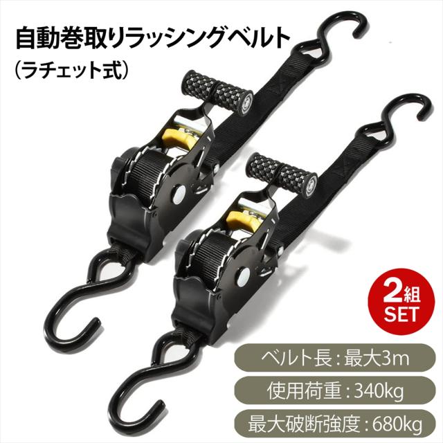 【2組セット販売】荷物固定ベルト ラチェット式 荷締めベルト 荷止めベルト ラッシングベルト 固定バンド 固定ベルト 荷締めベルト 固定紐 業務用 フック 格納式トラック 2組セット 簡単固定 アウトドア ツール キャンプ用品 バイク 引っ越し 荷造り 幅25mm 長さ最大3m 頑丈