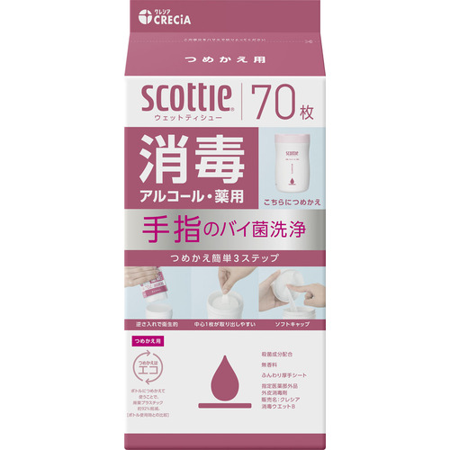 日本製紙クレシア スコッティ ウェットティシュー 消毒 アルコール つめかえ 70枚