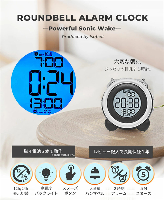 | 商品名 | ◆ラウンドベルデジタルアラームクロック |
