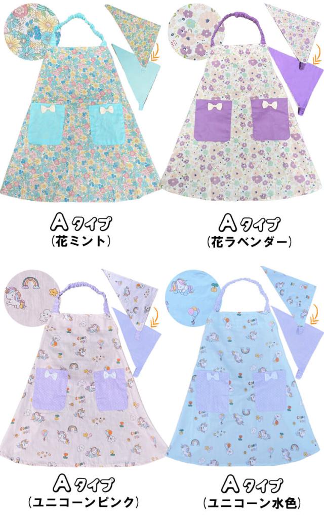 【メール便送料無料】キッズエプロン 三角巾セット100-140cmサイズ綿100% 後ろの部分がゴムタイプ こどもエプロン 子供用 エプロン 子供エプロン 幼児 小学生 かわいいト 女の子 男の子 調理実習 幼稚園 おしゃれ ギフト プレゼント かわいい 小学校 給食用