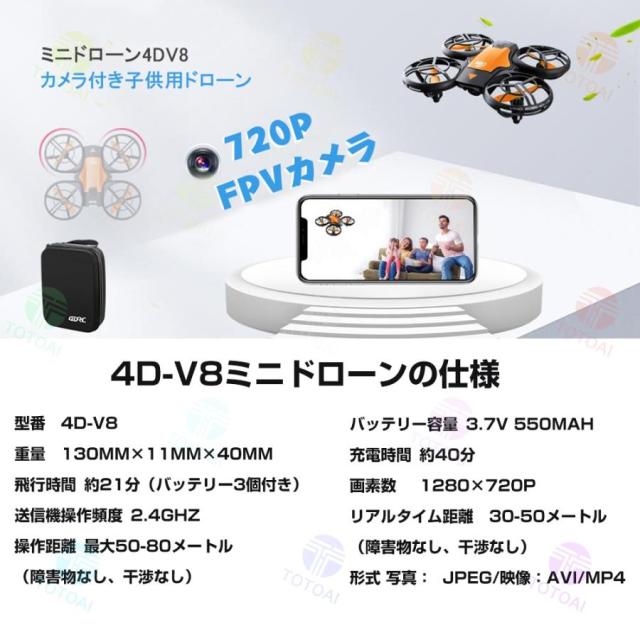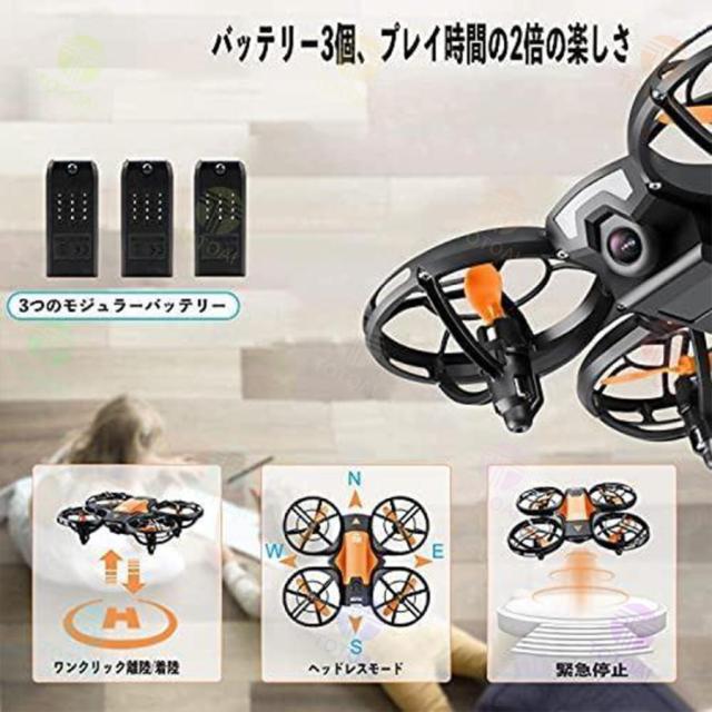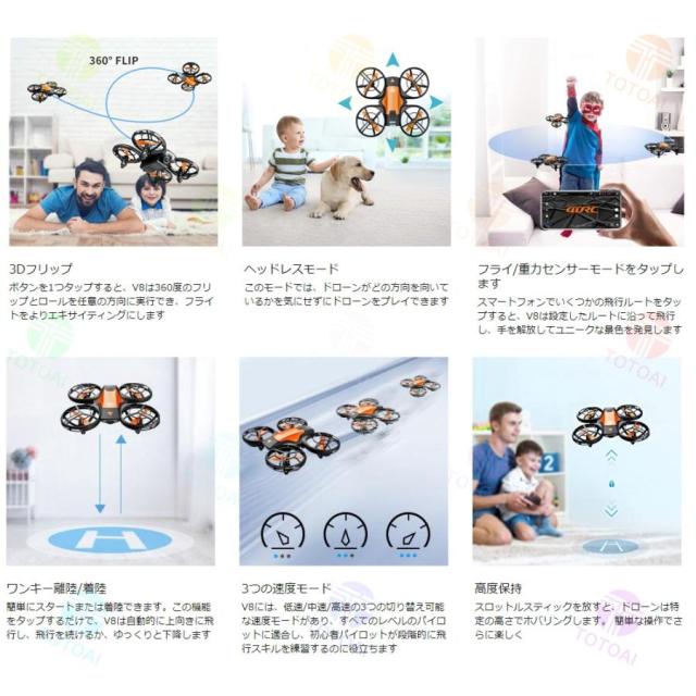 ヘッドレスモード(機体の向きに関係なく操縦者に対し前後方向に飛行するモード)搭載でドローン初心者に最適です。