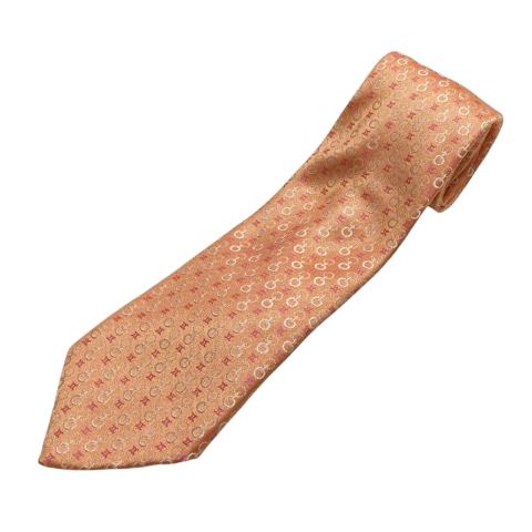 【中古】セリーヌ CELINE ネクタイ レギュラータイ 総柄 ロゴ 刺繍 絹 シルク 光沢 オレンジ アイボリー ピンク マルチカラー メンズ