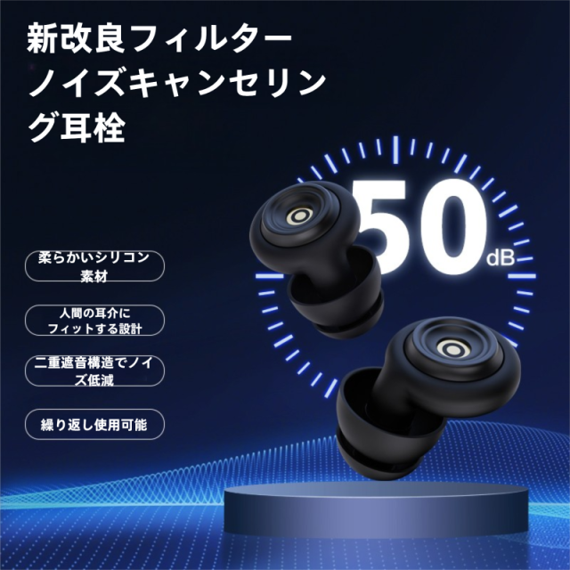 【強力なノイズキャンセリング】ソフトシリコン素材を使用し、SNR値が50dBに達する高い防音性能を実現。周囲の騒音を効果的に遮断し、どこでも静かな環境を提供します。睡眠の質と集中力を向上させ、聴覚を保護します。