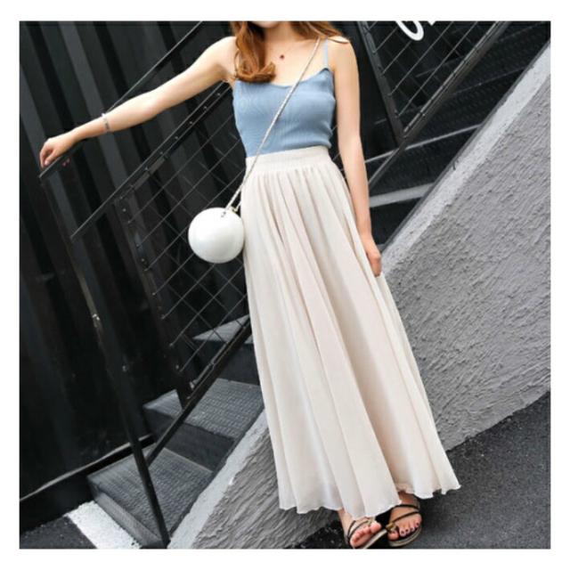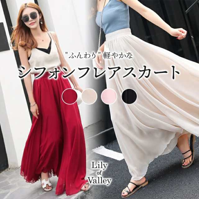 ウエストゴム シフォン フレア マキシ スカート ふんわり 上品 清楚 Aライン カジュアル / レディース ボトムス フレアスカート ロング丈 春夏 黒 紺 白 赤 紫 水色 オレンジ ライトピンク グレー ホワイト ブラック レッド ピンク ライトブルー ネイビー
