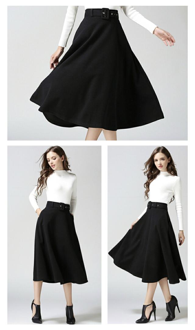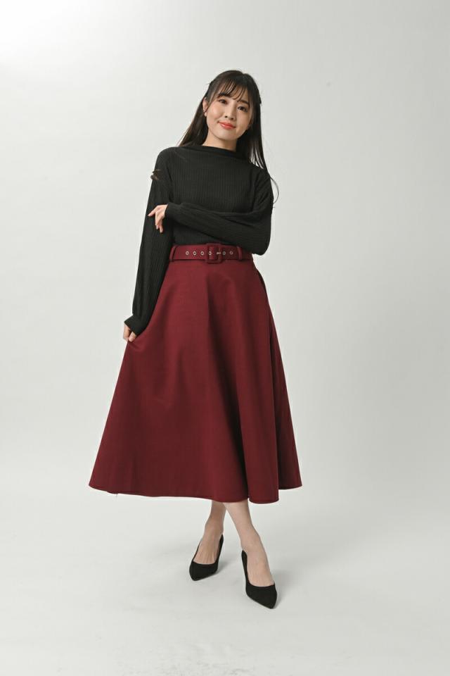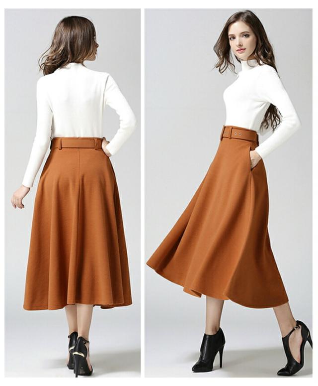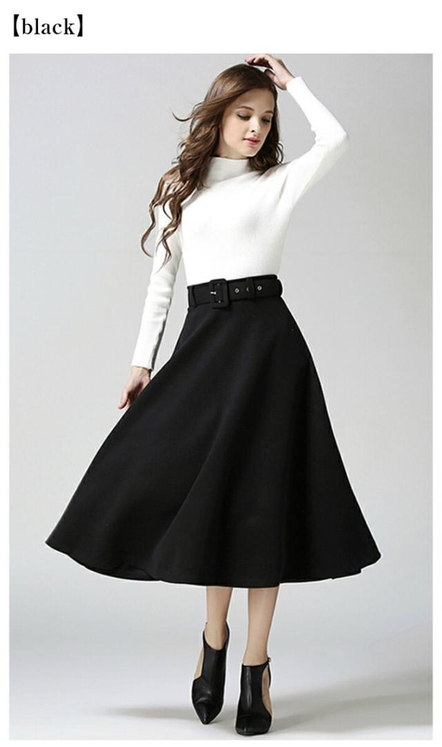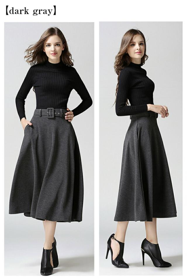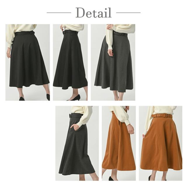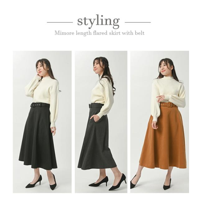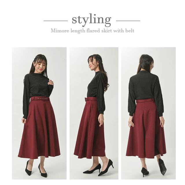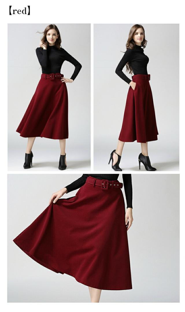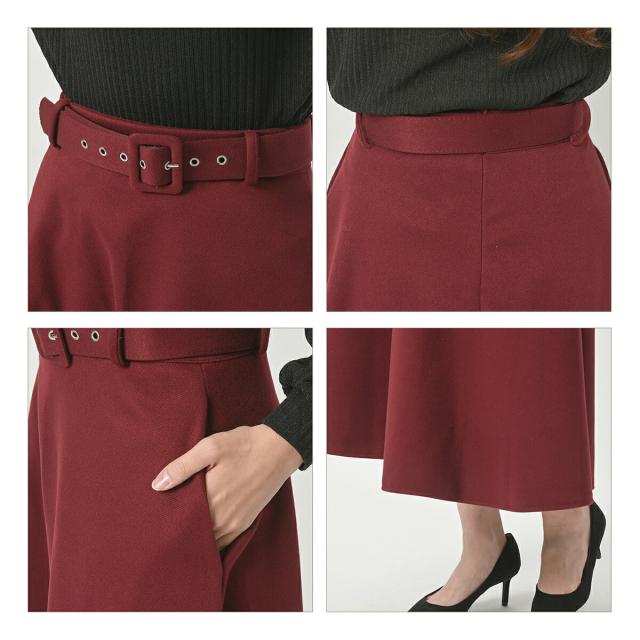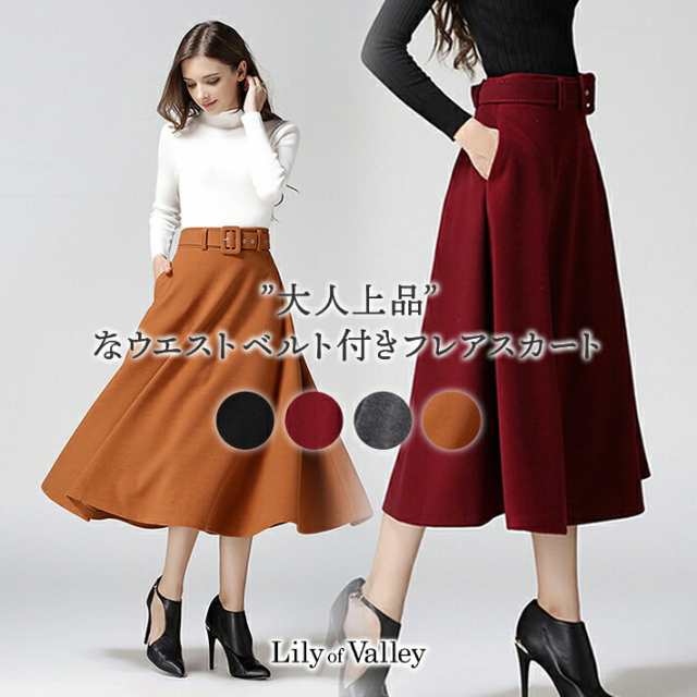 ベルト付き フレア Aライン スカート 秋冬 ミモレ ロング ミモレ丈 ポケット付き ひざ下 上品 レディース フレアスカート 膝下 ベルト 黒 ブラック グレー 赤 レッド キャメル 秋 冬 春 カジュアル 清楚 オフィス フォーマル カジュアル 大きいサイズ