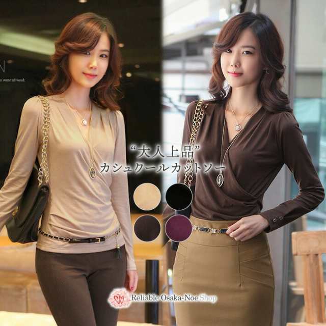 ナチュラル ブラウス 上品 Vネック カシュクール カットソー 長袖 ロングTシャツ 大きいサイズ トップス Tシャツ シャツ フリル シフォン きれいめ 春 夏 秋 冬 無地 フォーマル お呼ばれ 式 会 黒 ブラック ブラウン ボルドー ワインレッド アイボリー