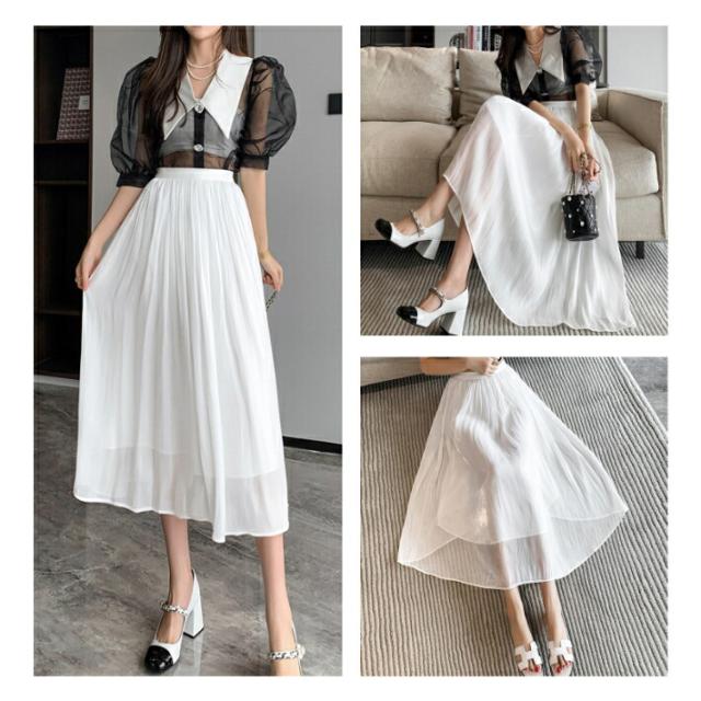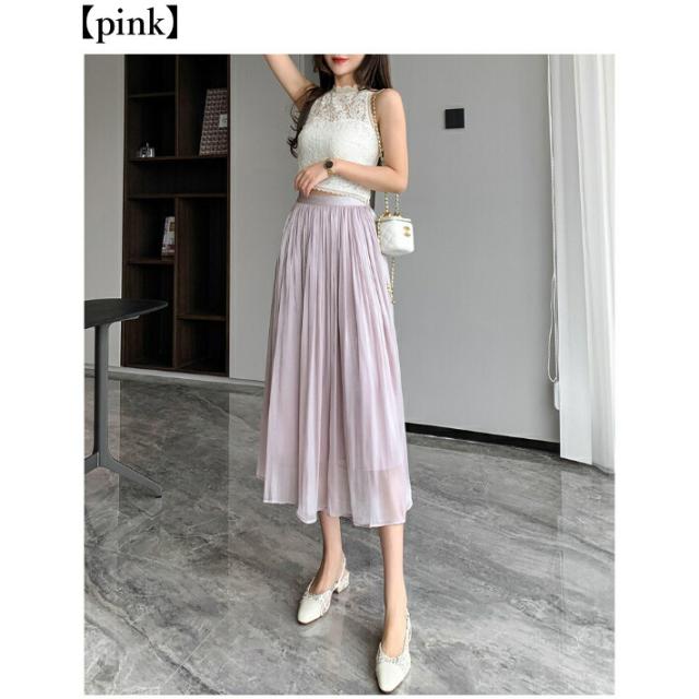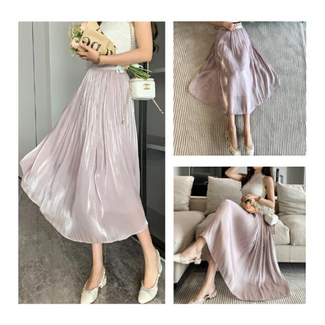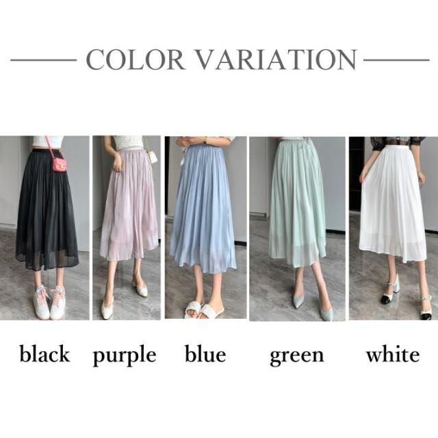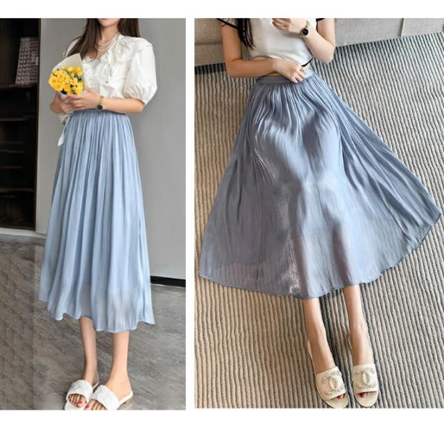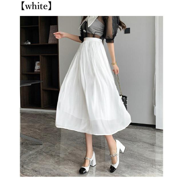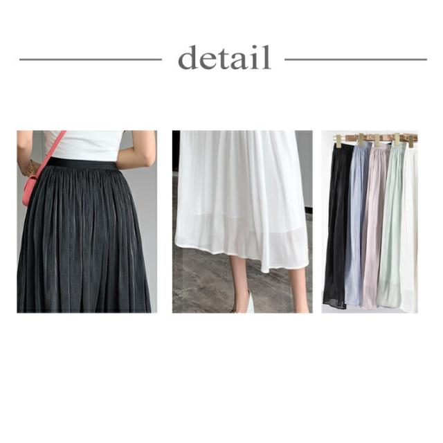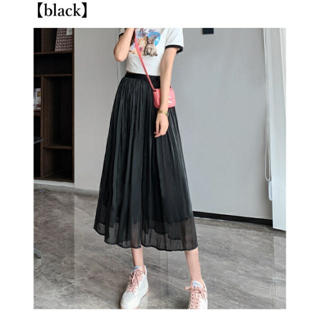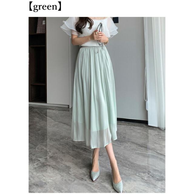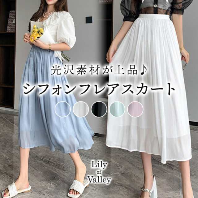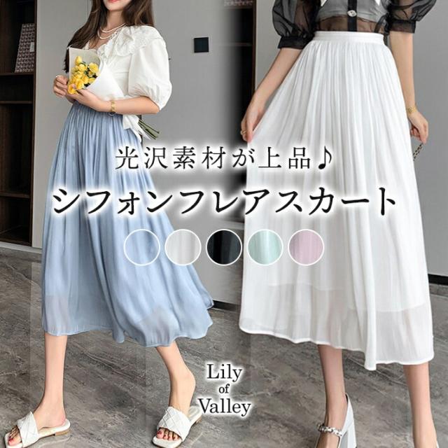 シャイニー シフォン フレア スカート ボトムス ミモレ丈 カジュアル 上品 大人可愛い / レディース ロング ふんわり きれいめ 清楚 ウエストゴム ハイウエスト ミモレ丈スカート 黒 茶色 紫 緑 水色 ピンク ブラウン アイボリー ホワイト グリーン 春夏