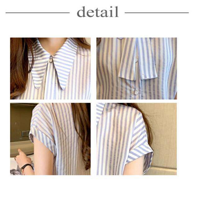 フレンチスリーブ ストライプ ボウタイ ブラウス 半袖 上品 きれいめ オフィス 襟付き 柄 / レディース トップス フレンチ シャツ カジュアル リボン オフィスカジュアル ボウタイブラウス 通勤 お呼ばれ 事務服 薄手 清楚 韓国 大人可愛い 水色 春夏 春 夏