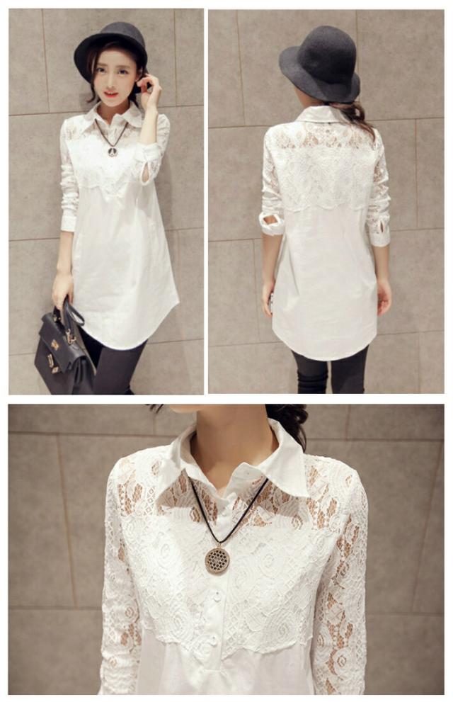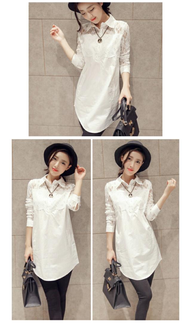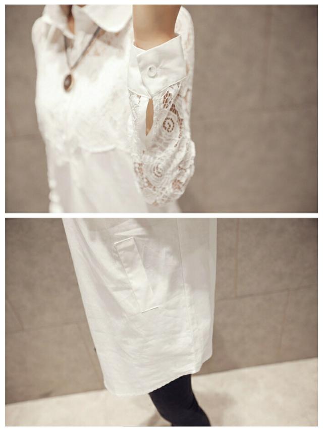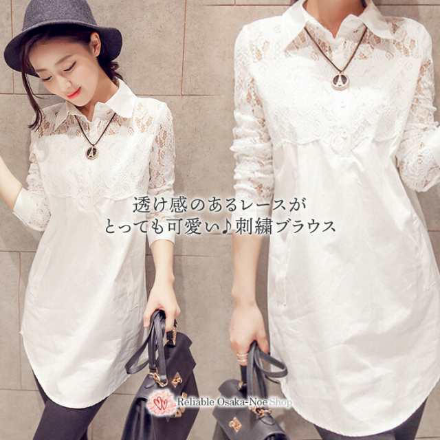 花柄 レース 刺繍 ブラウス シャツ ロング 丈 フェイク ポケット 付き 白 ホワイト / レースブラウス 刺繍ブラウス フラワー 花 柄 レディース トップス カットソー 長袖 ロング丈 大きいサイズ 総レース シースルー 袖 透け 上品 きれいめ 春 秋 夏 春夏