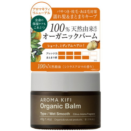 アロマキフィ オーガニックバーム ウェットスムース 40g 濡れ髪 スタイリング スタイリング剤 保湿バーム バーム オーガニック【送料無料】