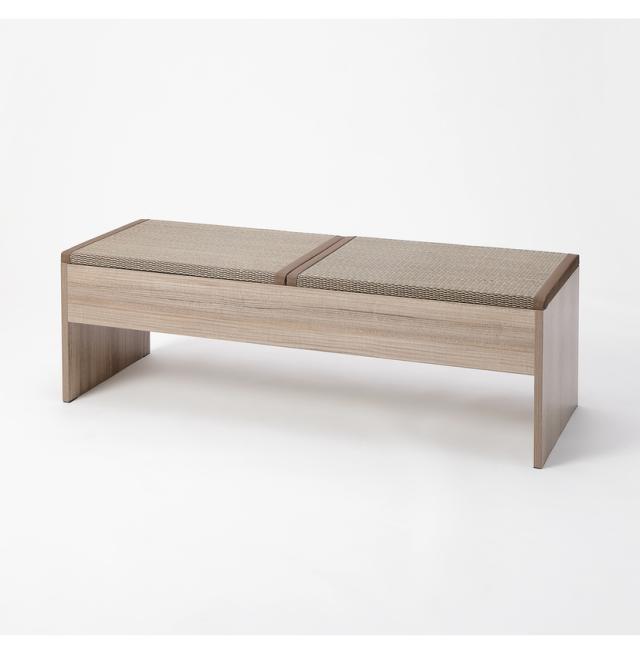 26/2/5停止 畳収納付きベンチ 120×43×39cm グレー×い草ブラウン 【メーカー直送・代引不可・置配不可】