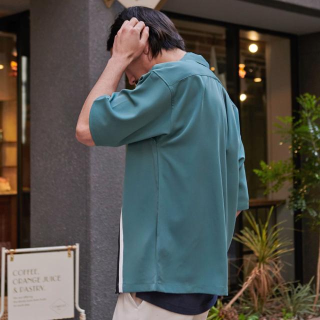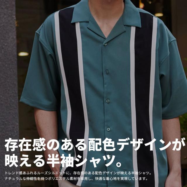 シャツ メンズ 半袖 ブランド おしゃれ 半袖シャツ 大きいサイズ ゆったり 切り替え スタイルアップ 大人 上品 カジュアルシャツ シンプル 無地 キレイめ 大人 グリーン ブラック M L 20代 30代 40代 ユニセックス 男性 男 服 春 夏 夏服 春夏 ファッション [NM25SU04]