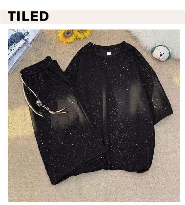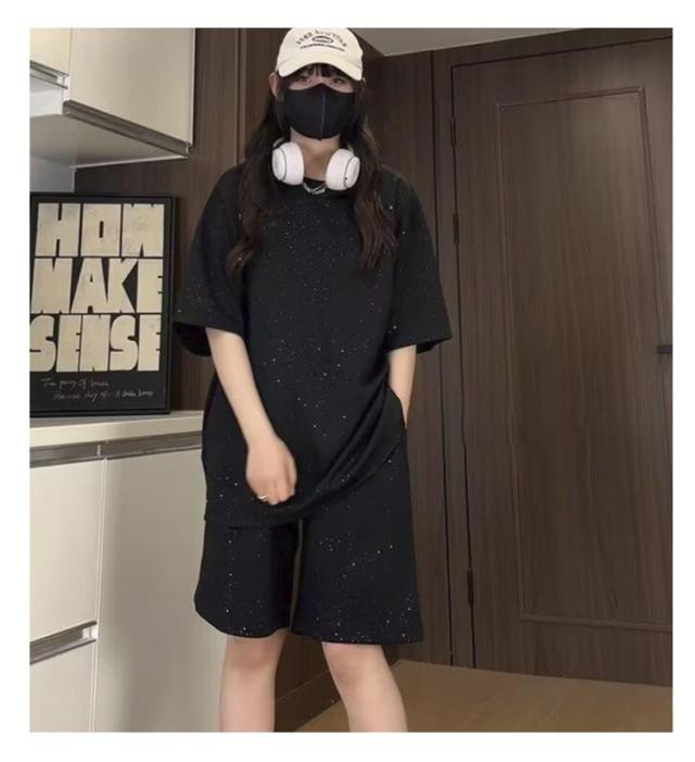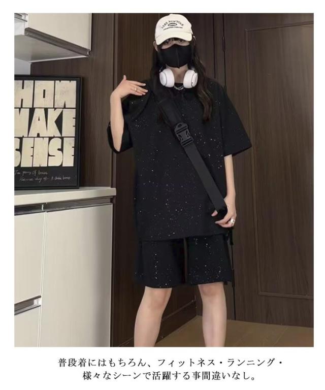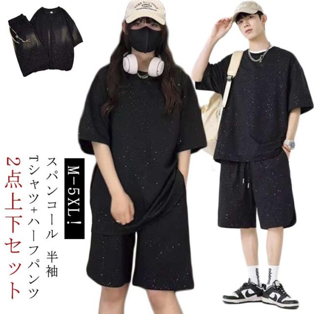 | M-5XL!スパンコール 半袖 Tシャツ+ハーフパンツ 2点上下セット。 軽量かつ通気性に優れ、吸汗速乾性が高い素材を使用しています。 普段着にはもちろん、フィットネス・ランニング・様々なシーンで活躍する事間違いなし。 | |