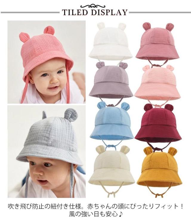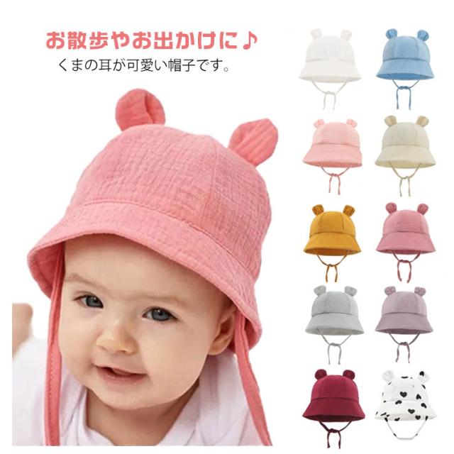 ハット 赤ちゃん くま耳 帽子 赤ちゃん帽子 ベビー キッズ ハット バケットハット あごひも あかちゃん 日よけ ベビー帽子 UV対策 子供用 キャップ オシャレ ぼうし こども UVカット 男の子 女の子 子供 6ヶ月 1歳 2歳 3歳
