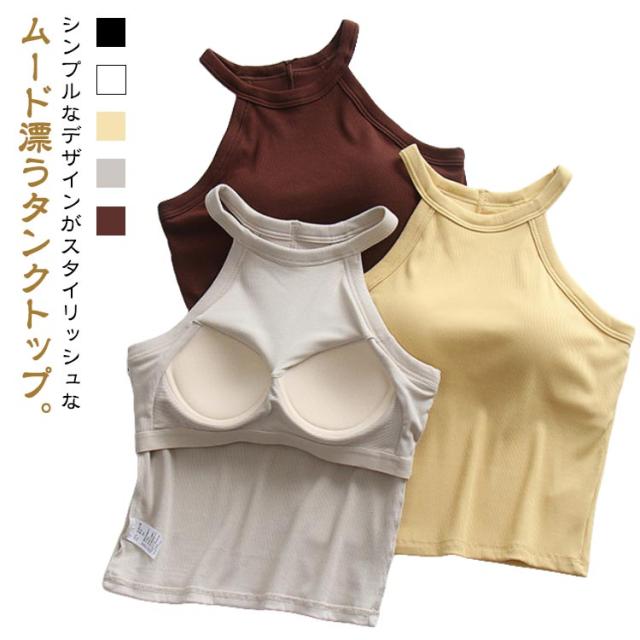 タンクトップ レディース カップ付き トップス 肌着 下着 インナー ホルターネック ノースリーブ ブラトップ ブラカップ ノンワイヤー 無地 大人 重ね着 レイヤード 着回し お洒落 スポーツ ヨガ ルームウェア 送料無料