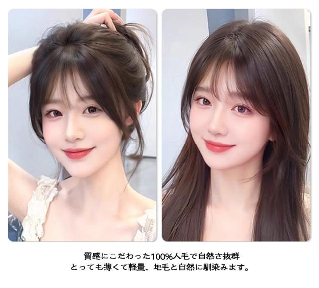 前髪ウィッグ パッツン 人毛100% 薄型 自然感 部分ウィッグ バレない つけ前髪 ふわふわ もみあげ付き クリップ ボリュームアップ 小顔効果 ワンタッチ エクステ つけ毛 ポイントウィッグ 着用簡単 普段使い 送料無料