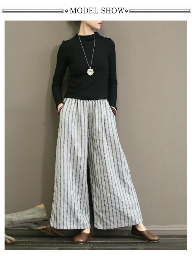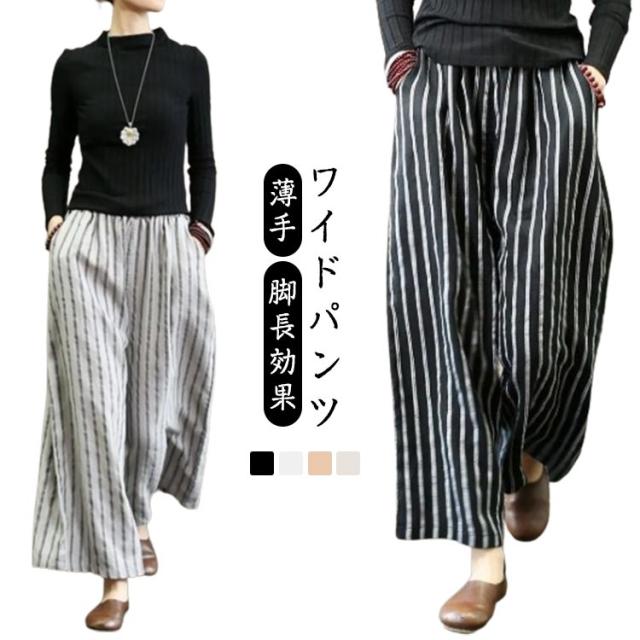 ストライプ パンツ ワイドパンツ レディース 春 夏 秋 薄手 ロングパンツ ウエストゴム ボトムス 涼しい パンツ ワイド ストライプパンツ 脚長効果 着?せ ストライプ柄 おしゃれ ボトムス 落ち感 カジュアル シンプル 綿 ナチュラル 大きいサイズ 大人 女性 送料無料