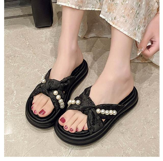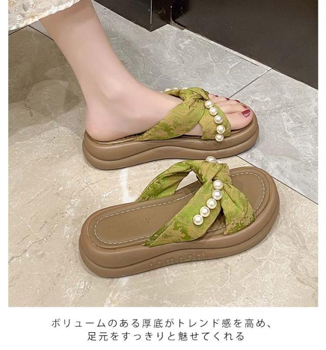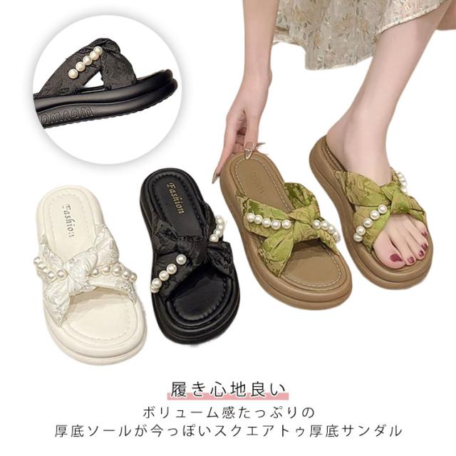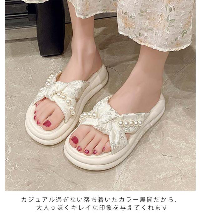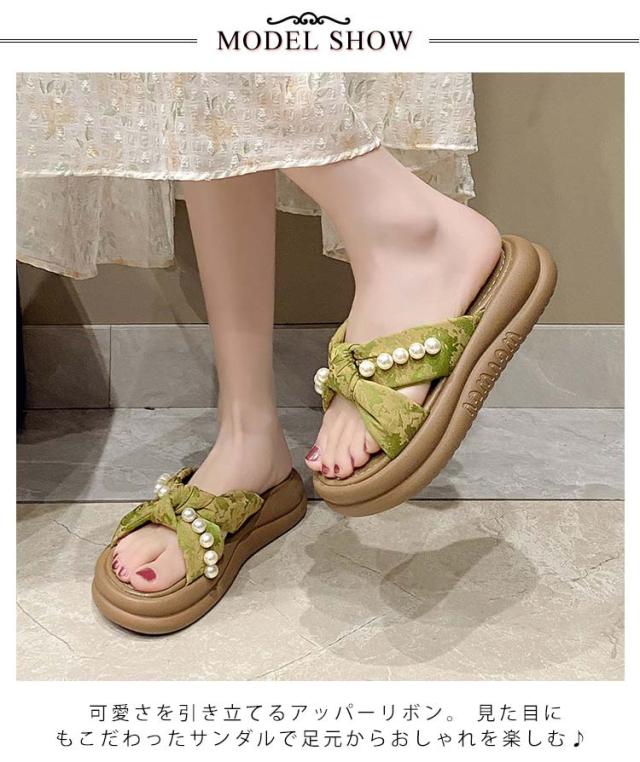 | 甲ベルトに大きめのパールが飾られ、可愛くておしゃれ度満点のサンダル。 さっと履けるミュールデザインで脱ぎ履きが楽ちん。 クッション性が高いので、ふわふわとして柔らかく履き心地抜群。 ボリュームソールで歩きやすく美脚・脚長やスタイルアップが期待できる。 カジュアルからキレイめまでどんなコーデにも合わせやすく、この夏大活躍してくれるアイテム。 | |