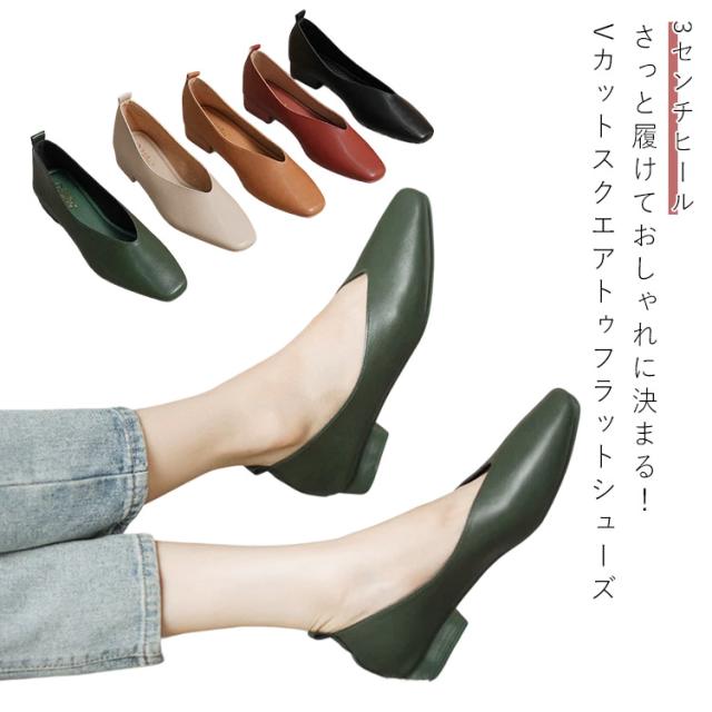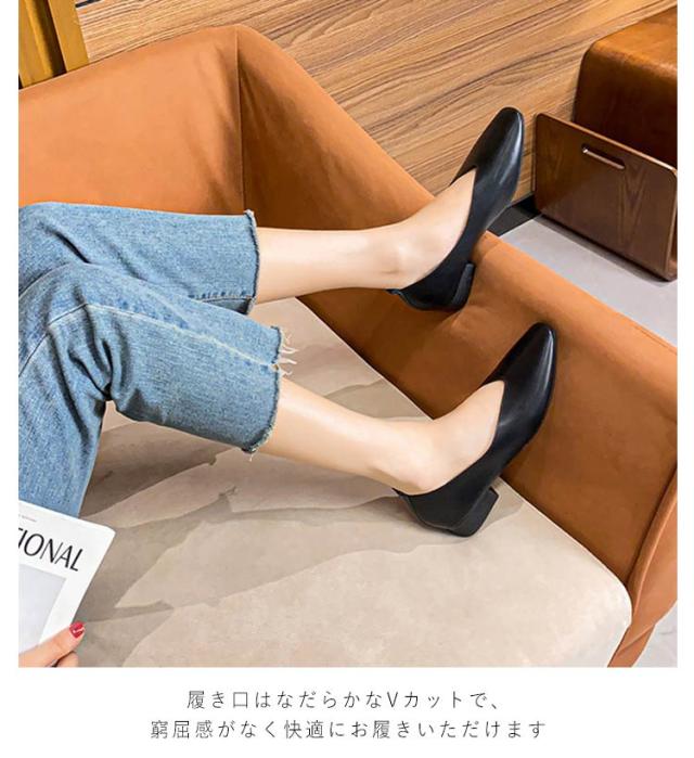 パンプス 痛くない チャンキーヒール 太ヒール ローヒール レディース スクエアトゥ シューズ 靴 スリッポン Vカット シンプル 無地 かわいい フォーマル 通勤 おしゃれ 疲れにくい 幅広 カジュアル 歩きやすい 軽い 結婚式