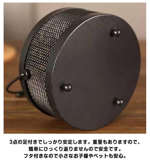 | お洒落 可愛いデザインの虫除け 蚊取り線香入れ! 風が吹いたり移動中などで少し傾けても、灰が溢れ出ません。 取っ手がありますので、移動もらくらく!お庭やアウトドアでも活躍してくれます。 使えやすさを考え、細部までこだわりを。スチール製だから丈夫で長持ち! 3点の足付きでしっかり安定します。重量もありますので、簡単にひっくり返りませんので安全です。 フタ付きなので小さなお子様やペットも安心。 | |