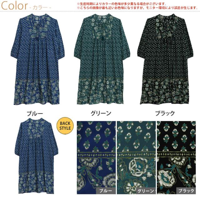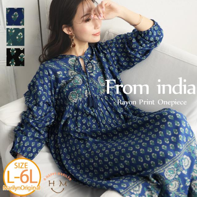 新作 大きいサイズ レディース ワンピース | 【FROM INDIA】 切替 レーヨン プリント ワンピース [496056] LL 3L 4L 5L 6L