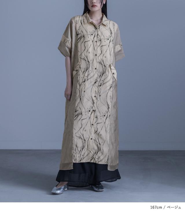 ワンピース レディース ドレス ロング丈 半袖 シャツワンピース シアー ペイント柄 無地 羽織 レイヤード 重ね着 春 夏 【TP】 ロングワンピース マキシワンピース シャツワンピ 襟付き マキシ丈 Iライン 総柄 ドッキング シースルー 透け感 ポケット おうちで洗える 秋 カジュアル シンプル モード マニッシュ キレカジ フェミニン ゆったり ゆる 楽ちん お尻が隠れる 二の腕カバー Sサイズ Mサイズ Lサイズ LLサイズ 3Lサイズ XLサイズ フリーサイズ ぽっちゃり 体型カバー 大きいサイズ プラスサイズ 10代 20代 30代 40代 50代 60代 女子会 オフィス 通勤 通学 お買い物 お出掛け 旅行 リゾート レジャー おしゃれ お洒落 トレンド 流行 kOhAKU コハク 大人女子 大人可愛い お洒落可愛い 大人カジュアル ラフ スタイリッシュ 洗練 エッジィ 上品 きれいめ かっこいい osharewalker オシャレウォーカー おしゃれうぉーかー ベージュ ブラック 黒[ID]12dn0t0