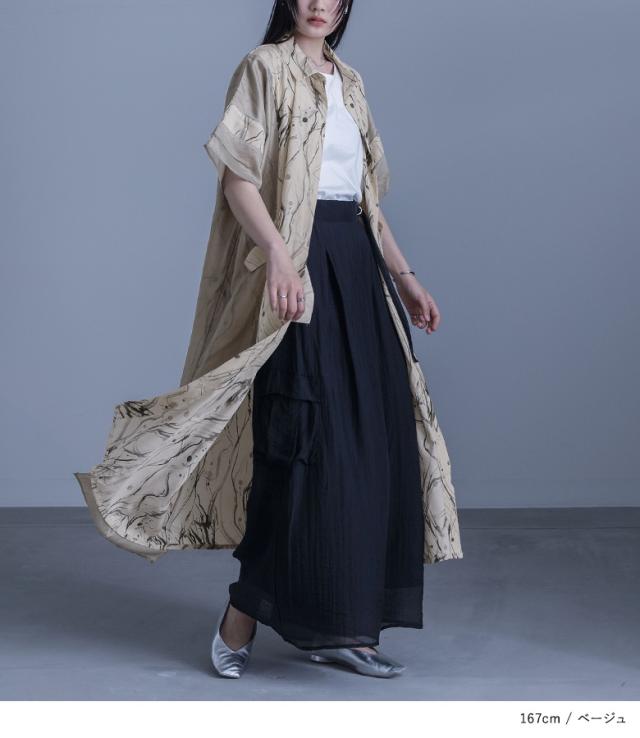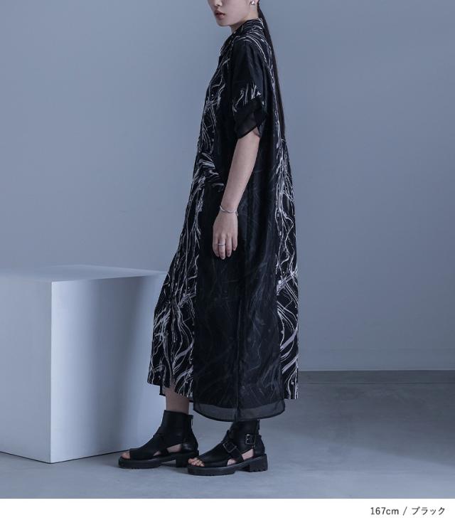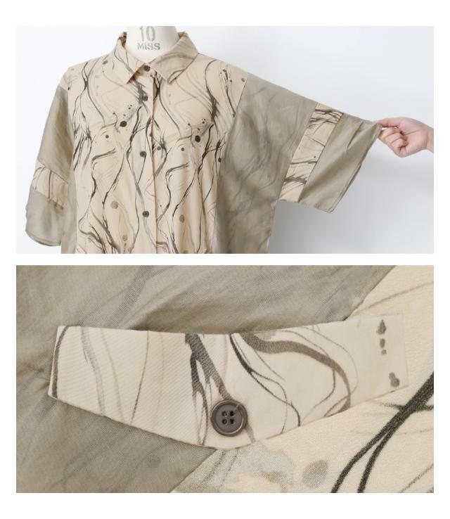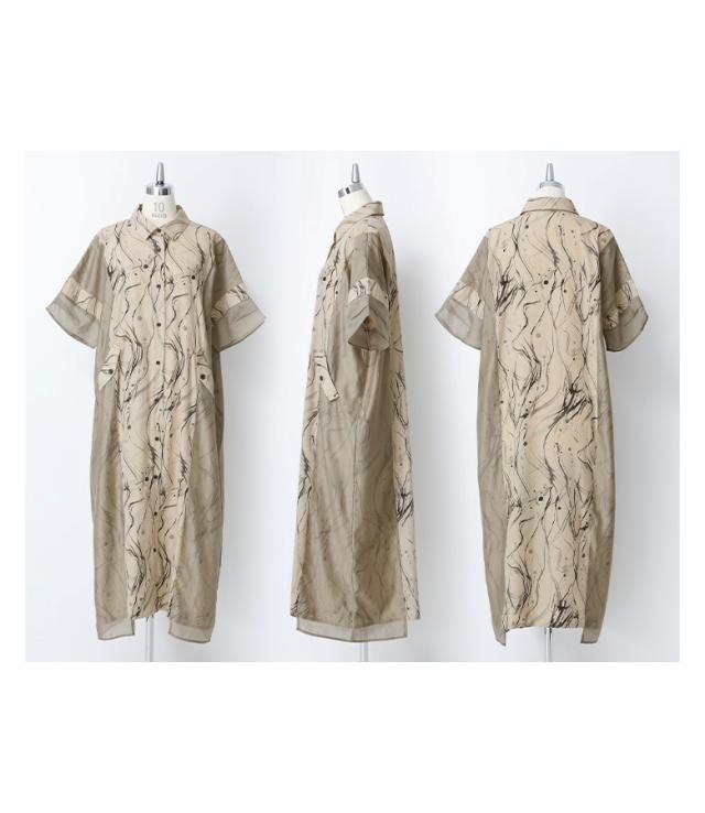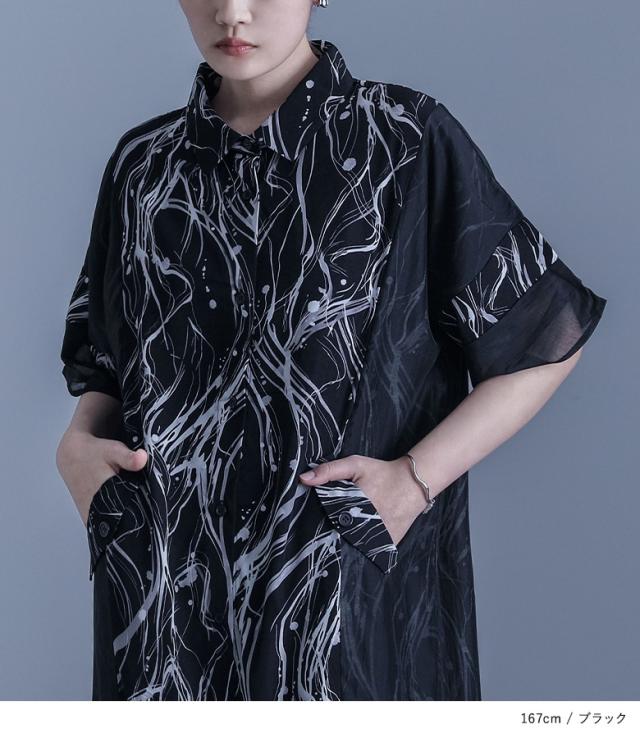 『シアードッキングシャツワンピース』※メール便可※【10】[ワンピース レディース ドレス ロング丈 半袖 シャツワンピース シアー ペイント柄 無地 羽織 レイヤード 重ね着 春 夏]