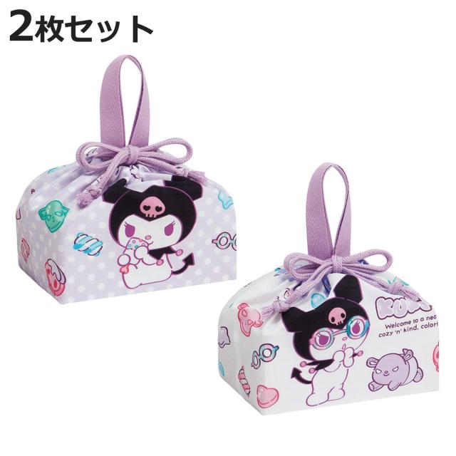 弁当袋 ランチ巾着 2枚セット KUマシュグミ ( クロミ お弁当袋 給食袋 巾着袋 ランチバッグ 子供 お弁当箱 日本製 弁当箱 弁当 給食 袋 弁当巾着 マチ 小物入れ 幼稚園 保育園 キッズ )