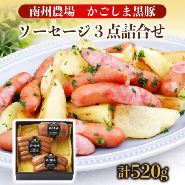 黒豚ソーセージ3点詰合せ 520g ウインナーソーセージ フランクフルト ボロニアソーセージ 美味しい 黒豚 セット おすすめ 贈答 ギフト 南州農場株式会社 タビグルメ