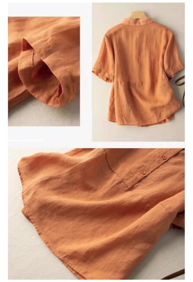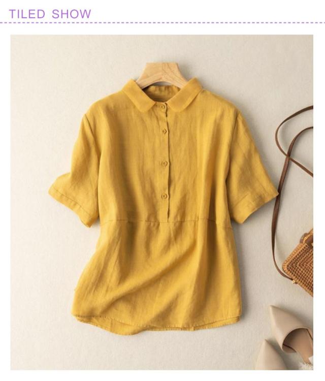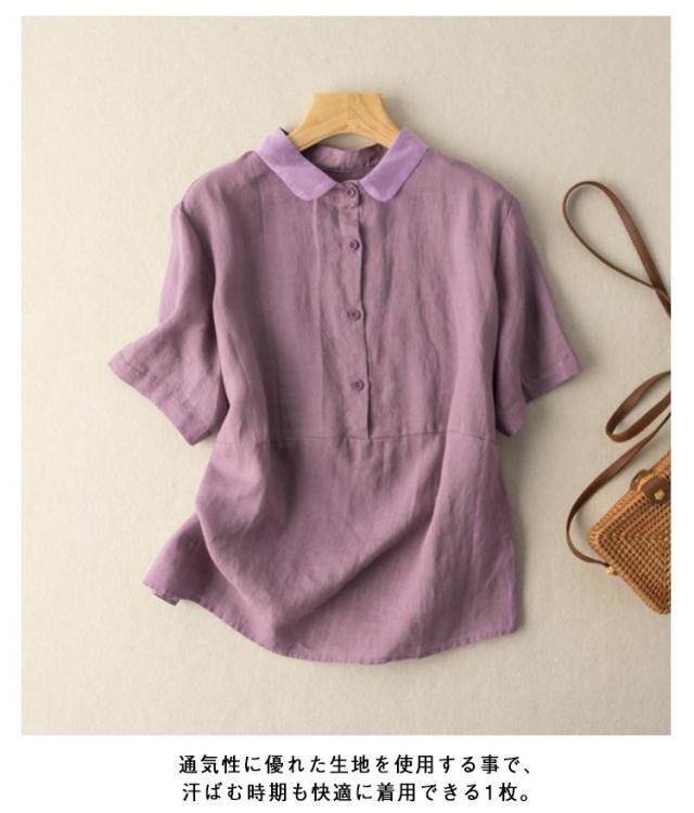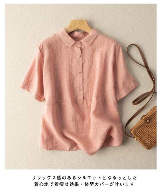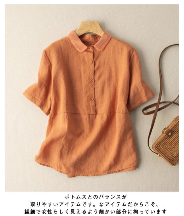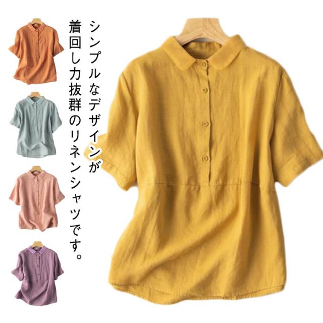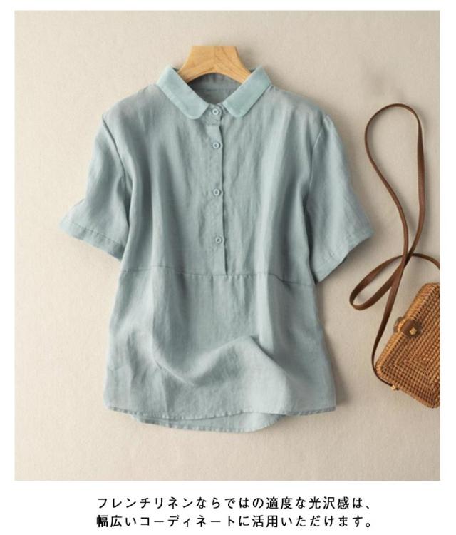 透け感 リネンブラウス レディース リネンシャツ フレンチリネン ブラウス 半袖 トップス リネンブラウス シンプル 30代 上品 大人かわいい 50代 春 40代 無地 60代 春夏 20代 夏 通勤 秋 通勤 在宅