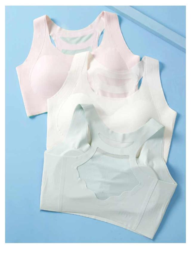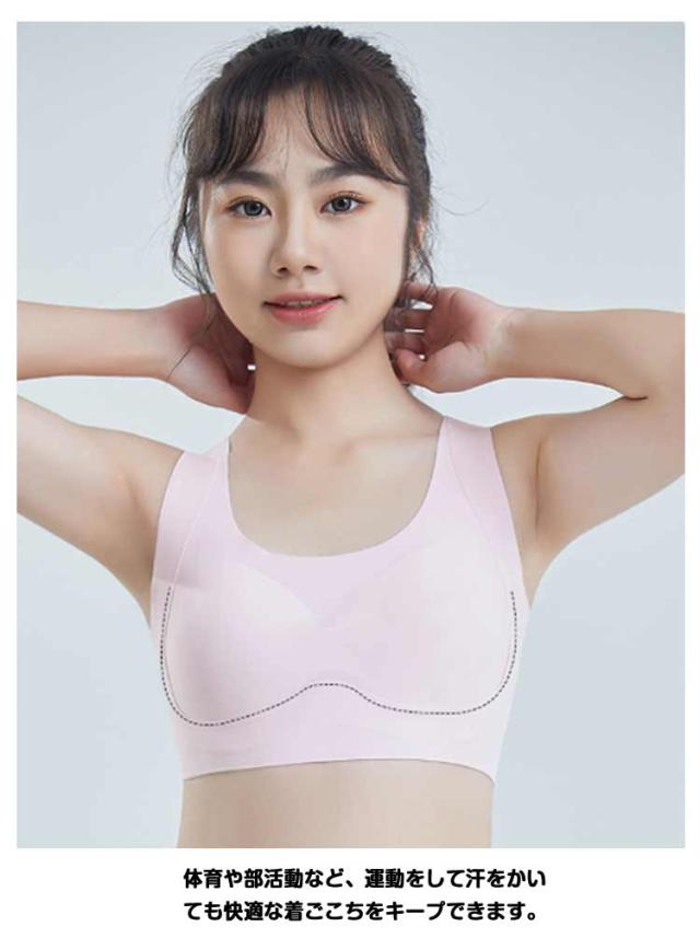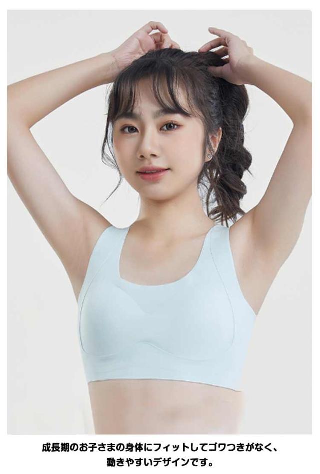 | スポーツブラ 成長期の女の子に合う!! 成長期のお子さまの身体にフィットしてゴワつきがなく、動きやすいデザインです。 バストのアンダー部分は、ゴムが背中まで一周しているので、安定感もバッチリ! 体育や部活動など、運動をして汗をかいても快適な着ごこちをキープできます。 パッド取り外し可能、成長の余地を確保するために容量を増やす。ワイヤなしのブラジャー、締め付け感がない。幅広のショルダーストラップでストレスを分散する。 バックメッシュデザインは乾いていて通気性があり蒸し暑くない。制菌防臭加工が施されていて、気になる汗のニオイを抑えます。 浅い色で体操服や制服から透けにくい色、普段使いやスクール用に幅広くご利用いただけます。 | |