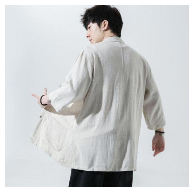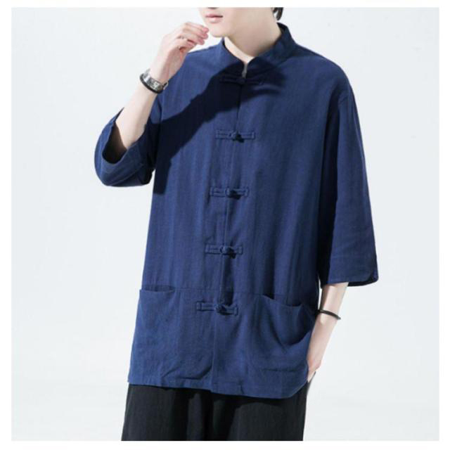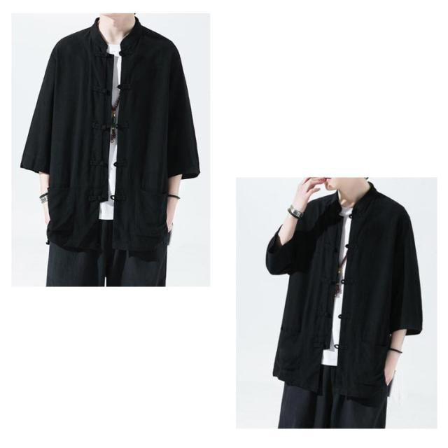 チャイナシャツ トップス 夏物 春物 綿麻 5分袖 ダンス チャイナ服 スタンドカラーシャツ 涼しい メンズ 無地 男性 半袖シャツ カジュアルシャツ 唐装 漢服 普段着 部屋着 演出服