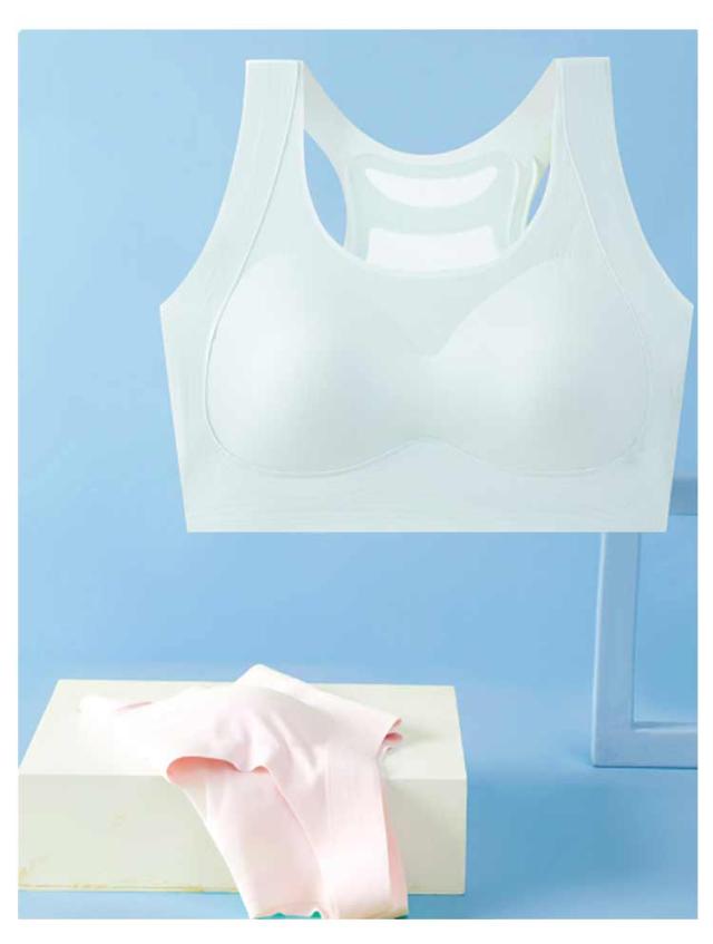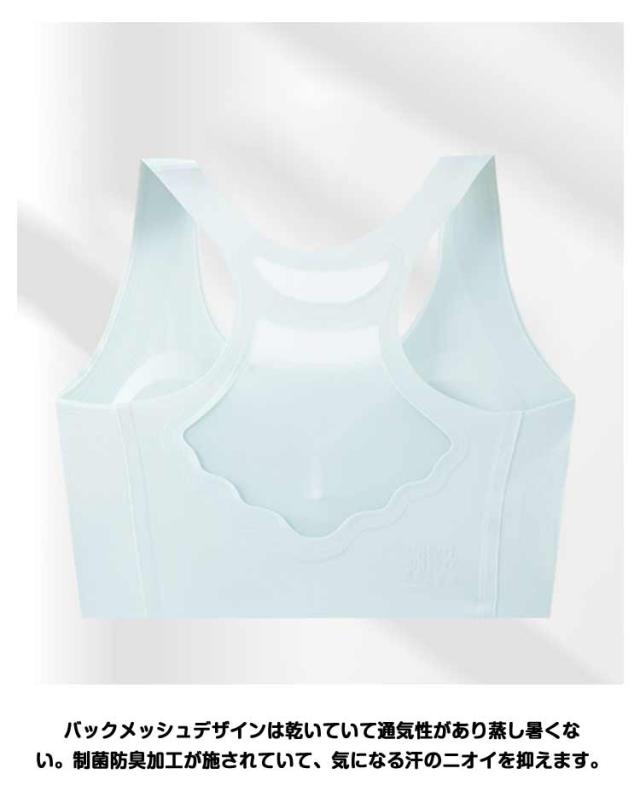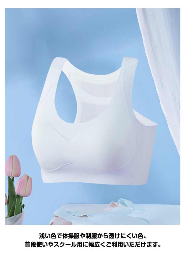 | スポーツブラ 成長期の女の子に合う!! 成長期のお子さまの身体にフィットしてゴワつきがなく、動きやすいデザインです。 バストのアンダー部分は、ゴムが背中まで一周しているので、安定感もバッチリ! 体育や部活動など、運動をして汗をかいても快適な着ごこちをキープできます。 パッド取り外し可能、成長の余地を確保するために容量を増やす。ワイヤなしのブラジャー、締め付け感がない。幅広のショルダーストラップでストレスを分散する。 バックメッシュデザインは乾いていて通気性があり蒸し暑くない。制菌防臭加工が施されていて、気になる汗のニオイを抑えます。 浅い色で体操服や制服から透けにくい色、普段使いやスクール用に幅広くご利用いただけます。 | |