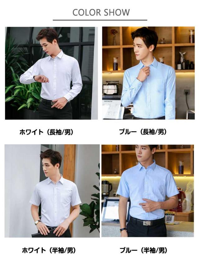 | 半袖/長袖ワイシャツ。 メンズとレディースのスタイルをご用意。 おしゃれな通勤スタイル?シンプルでエレガント?シャープでスタイリッシュ。 素材の性質により、乾きやすくシフになりにくいのでお手入れもラクラク。 オフィスや面接や出張など、さまざまなフォーマルな場面に欠かせないシャツです。 | |