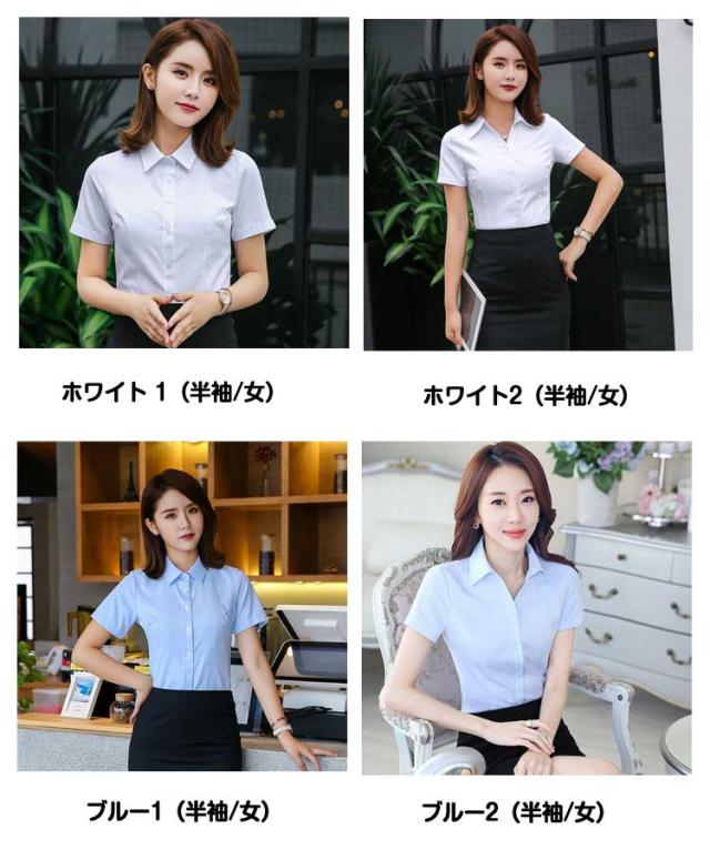 ワイシャツ Vネック オフィス レディース 制服 襟付き 無地 ビジネス シャツ メンズ ブラウス スーツ インナー 春 夏 シワになりにくい 開襟 事務服 半袖 通勤 リクルート 白 ブル ワイシャツ イージーケア 速乾