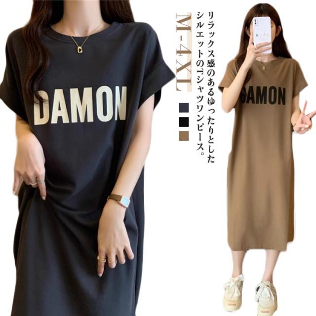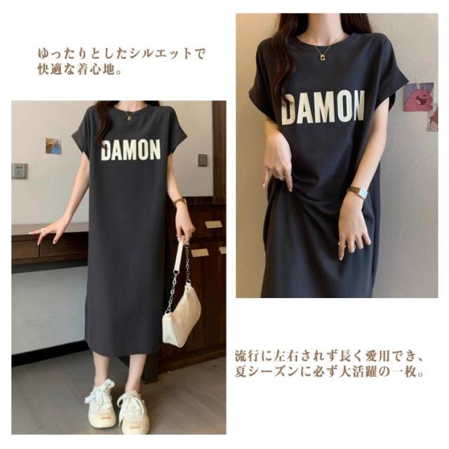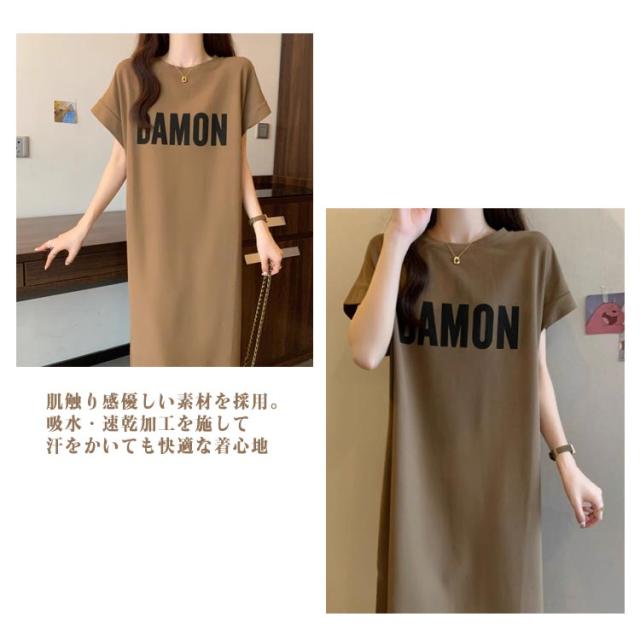 半袖 レディース ワンピース Tシャツワンピース ロングワンピース Tシャツワンピース 着痩せ 膝下 体型カバー カットソー 夏 ワンピース おしゃれ 大きいサイズ ゆったり 通勤 オフィス